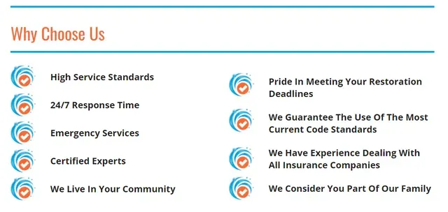 Our services will always be above code whether it’s our top-quality craftsmanship or using the best materials available to quickly restore your property. We Promise!
